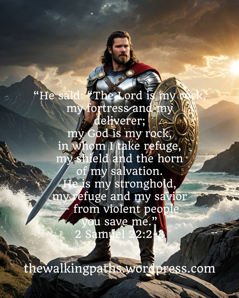 ‘The Lord is my rock, my fortress and my deliverer; my God is my rock, in whom I take refuge, my shield and the horn of my salvation.He is my stronghold, my refuge and my savior—from violent people you save me.’”